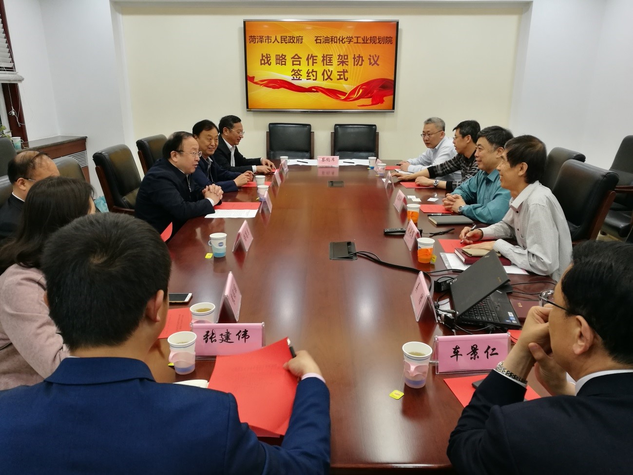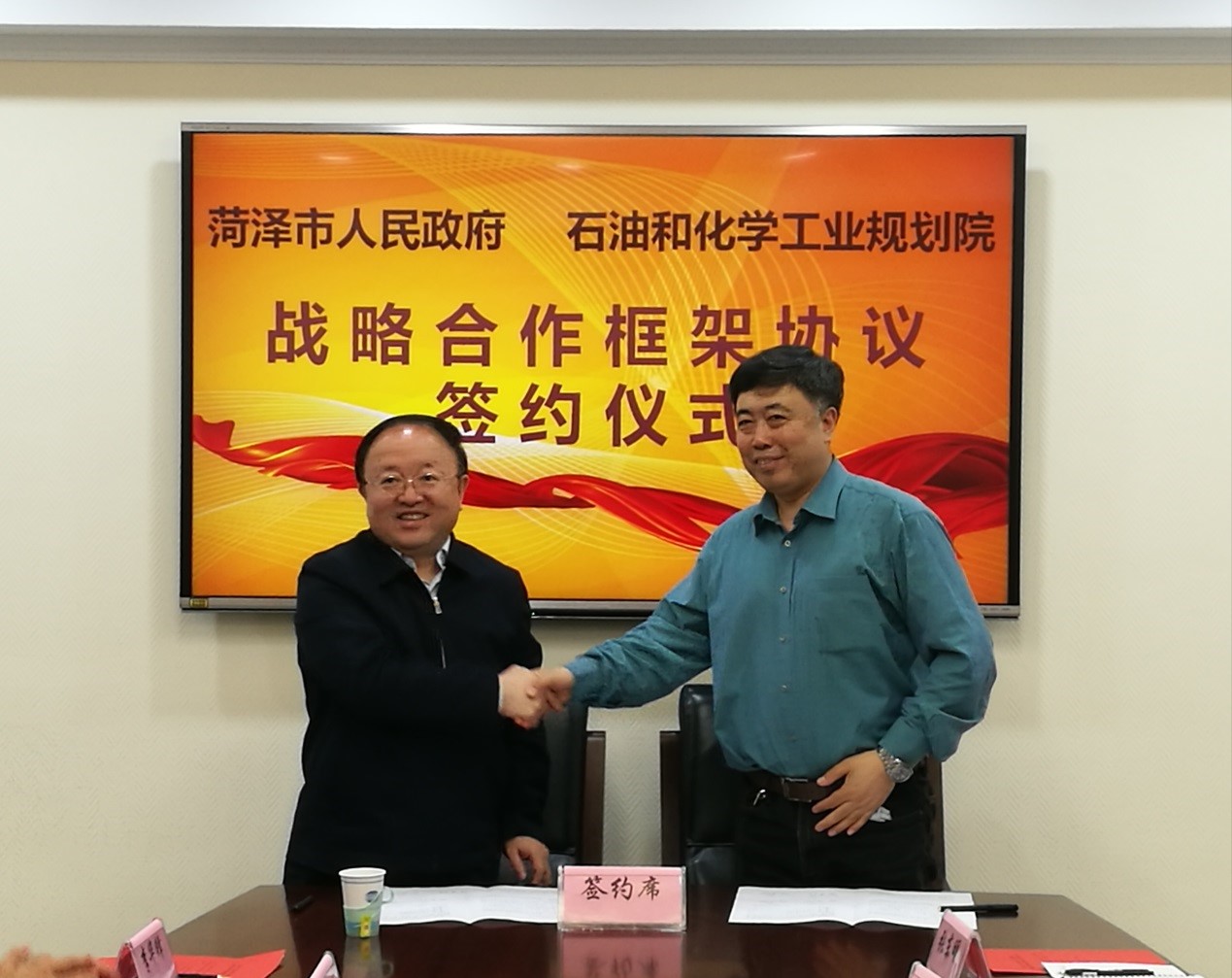 4月21日,石油和化學(xué)工業(yè)規(guī)劃院與菏澤市人民政府戰(zhàn)略合作框架協(xié)議簽約儀式在我院舉行。我院出席簽約儀式的有史獻(xiàn)平副院長、劉延偉副總工程師、李家偉主任以及石化處的張東明和吳潛。菏澤市出席簽約儀式的有曹升靈副市長、經(jīng)信委閆凌主任、科技局彭德啟局長以及經(jīng)信委李華峰副主任、袁煥麗科長和張建偉副科長。