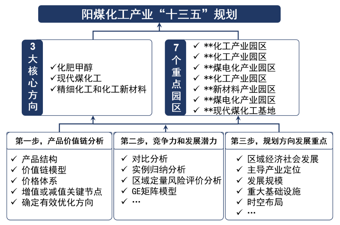 面對宏觀經濟轉型調整、傳統化工產能過剩、咨詢行業復雜多變的新形勢和新需求,我院開發了以產業價值鏈為核心的評價診斷咨詢方法。2015年,受陽煤化工股份有限公司委托,我院對陽煤集團的化工產業進行評價診斷,依此研究制定企業“十三五”規劃。和以往規劃不同,該項工作評價方法具有較強的針對性,體現了較高的咨詢質量。