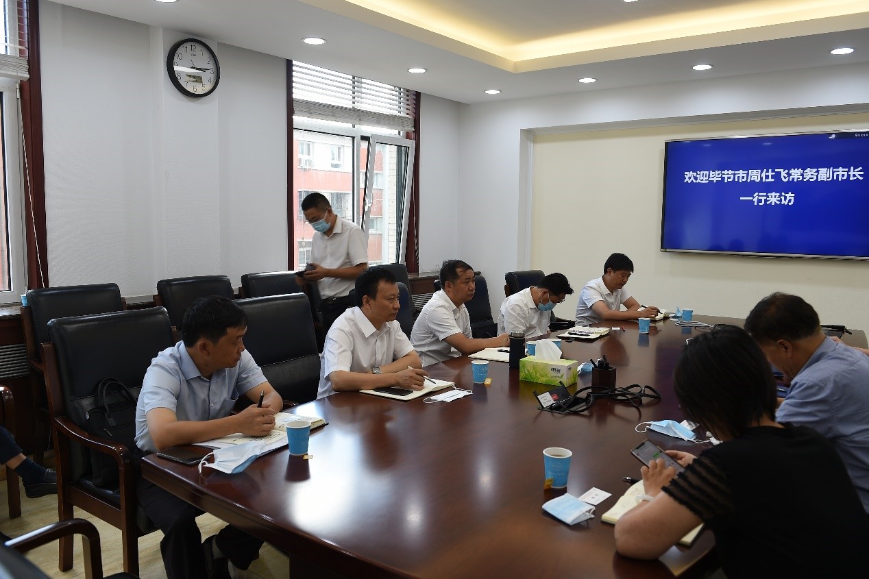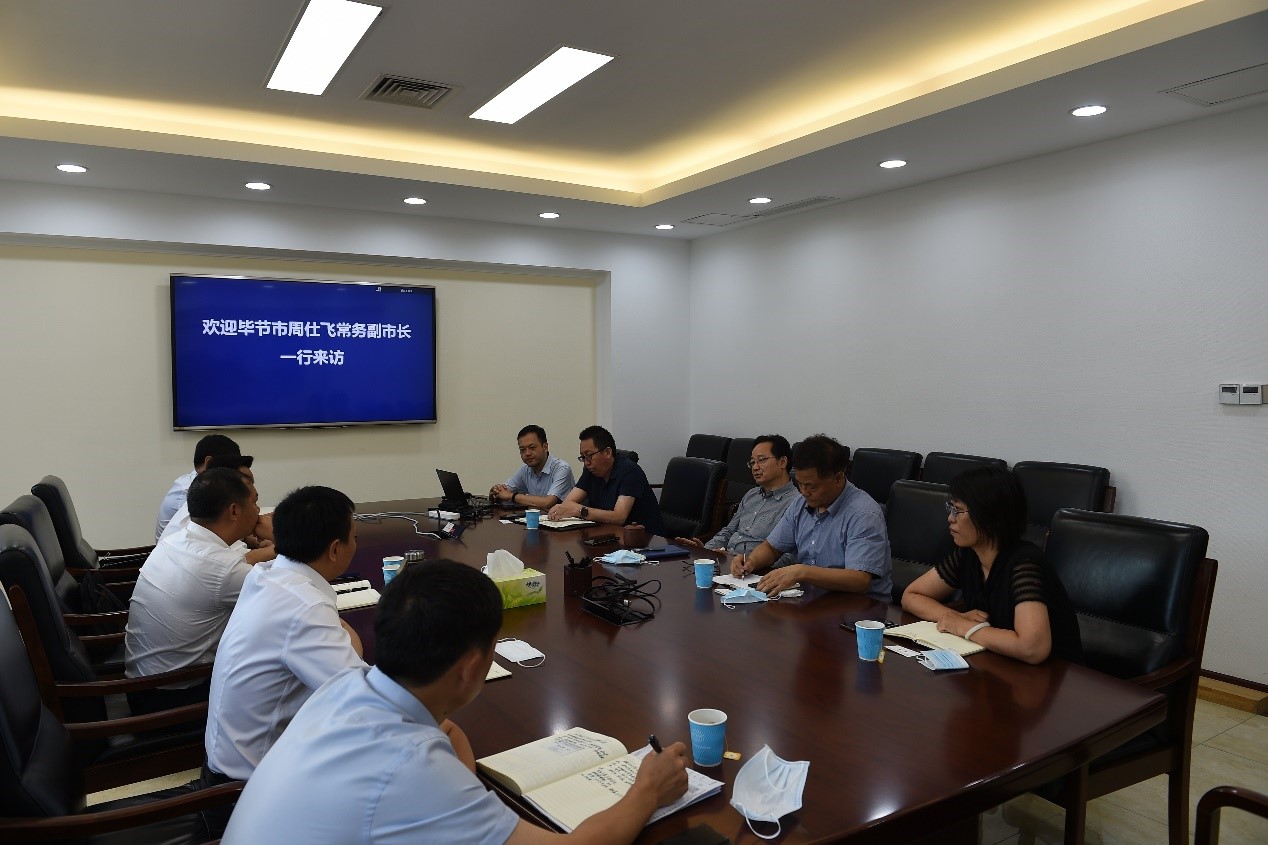 8月25日,貴州省畢節(jié)市市委常委、常務(wù)副市長(zhǎng)周仕飛,市人大副主任、織金縣委書(shū)記楊華,市政府副秘書(shū)長(zhǎng)黃海港,織金經(jīng)濟(jì)開(kāi)發(fā)區(qū)專(zhuān)職副書(shū)記付正祥、管委會(huì)副主任陳華一行拜訪我院。院黨委書(shū)記、院長(zhǎng)李君發(fā),院黨委委員、院長(zhǎng)助理王鈺,能源化工處處長(zhǎng)韓紅梅、副處長(zhǎng)朱彬彬、高永峰副總工等領(lǐng)導(dǎo)及相關(guān)技術(shù)專(zhuān)家參與了會(huì)見(jiàn)。