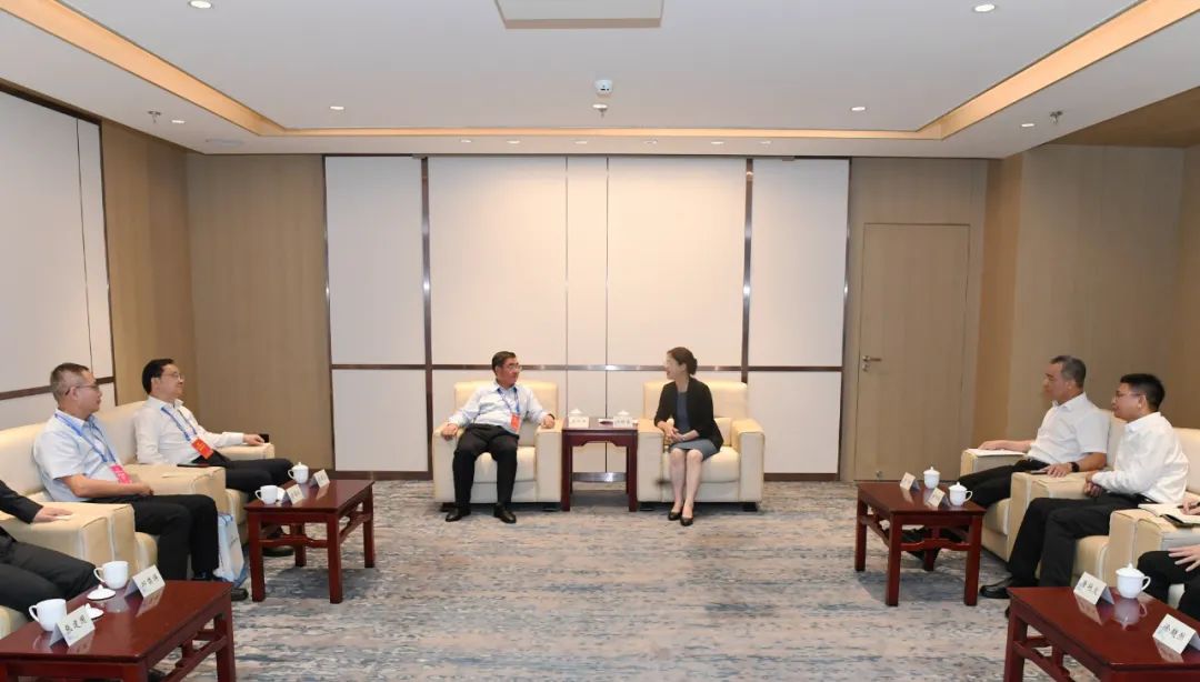 7月30日,市委書記鐘暢姿在南寧會見出席2023中國產業轉移發展對接活動(廣西)綠色化工產業專題活動的嘉賓,就欽州石化產業的發展與嘉賓進行深入洽談交流。