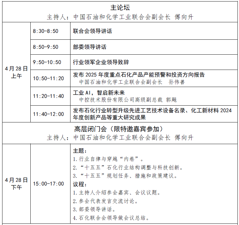 2025石化產(chǎn)業(yè)發(fā)展大會議程安排(更新中)