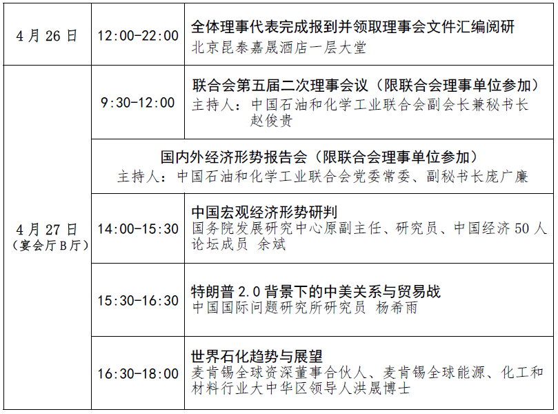 中國石油和化學(xué)工業(yè)聯(lián)合會第五屆二次理事會議議程(更新中)