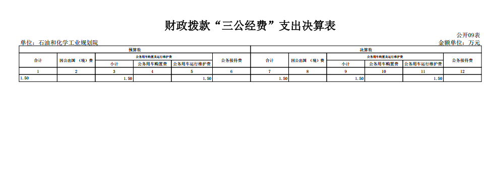 2024年決算實際撥款為:1.5萬元,其中:因公出國費0.00萬元、公務用車運行費1.5萬元、公務接待費0.00萬元。預決算撥款持平。
